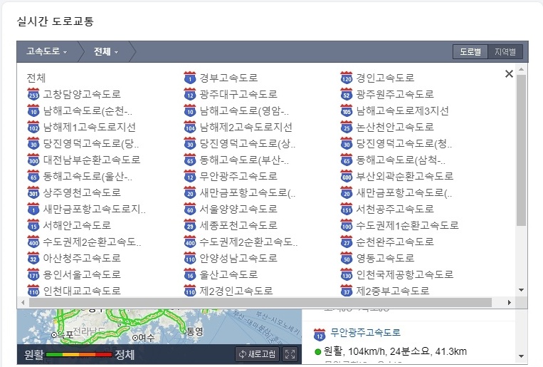 2. 국내에 있는 모든 고속도로 목록을 볼 수 있습니다. 원하는 고속도를 선택하면 됩니다.