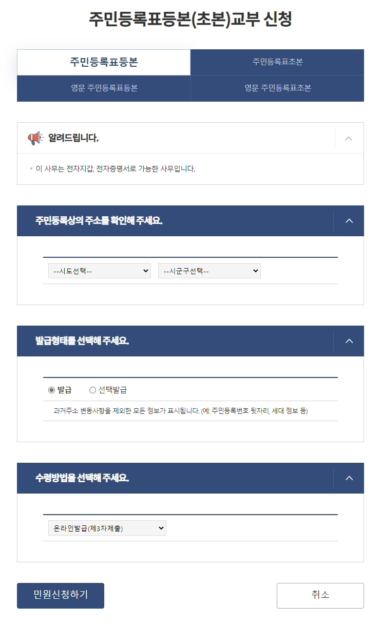 - 인터넷발급은 민원 24에서 서비스를 이용할 수 있습니다.