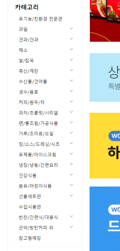 쿠팡 쇼핑몰 식품 카테고리 바로가기
