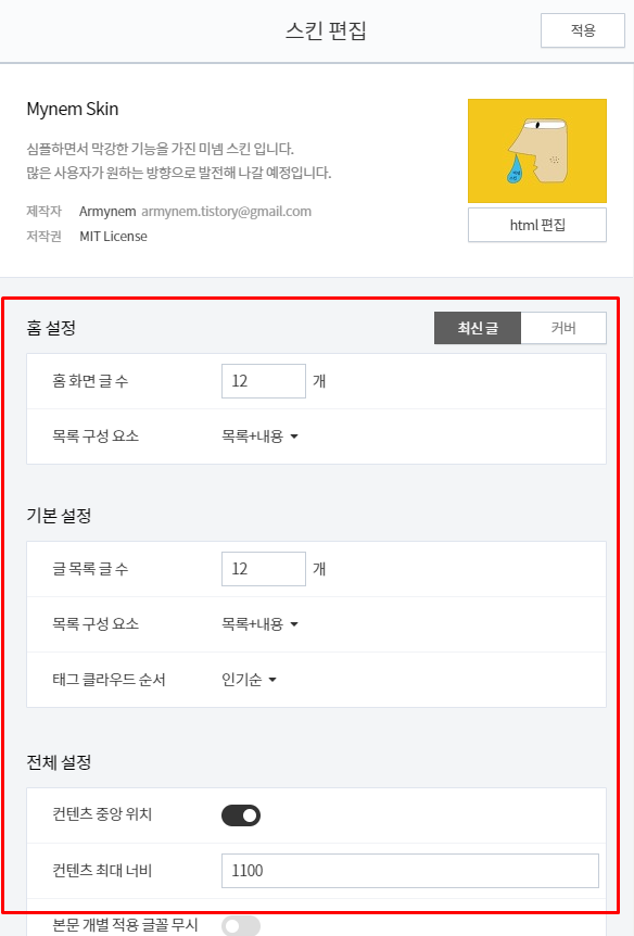 - 블로그 스킨 편집