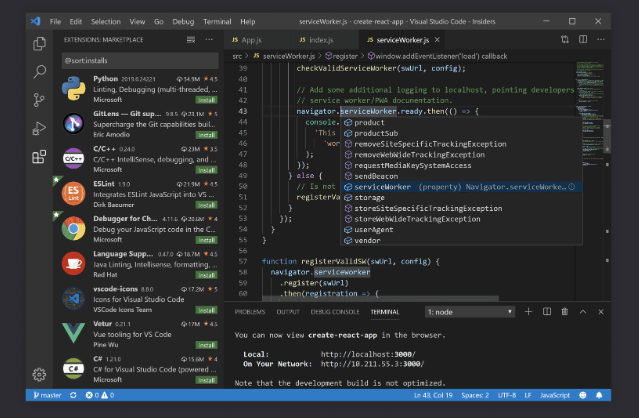 - 다양한 언어의 개발 환경을 지원하고 있으며, 확장프로그램을 이용한 확장성이 좋습니다. 또한, 가볍다고 하니 익숙해지면 다방면으로 활용도가 좋을 수 있습니다. 무료로 이용이 가능합니다.