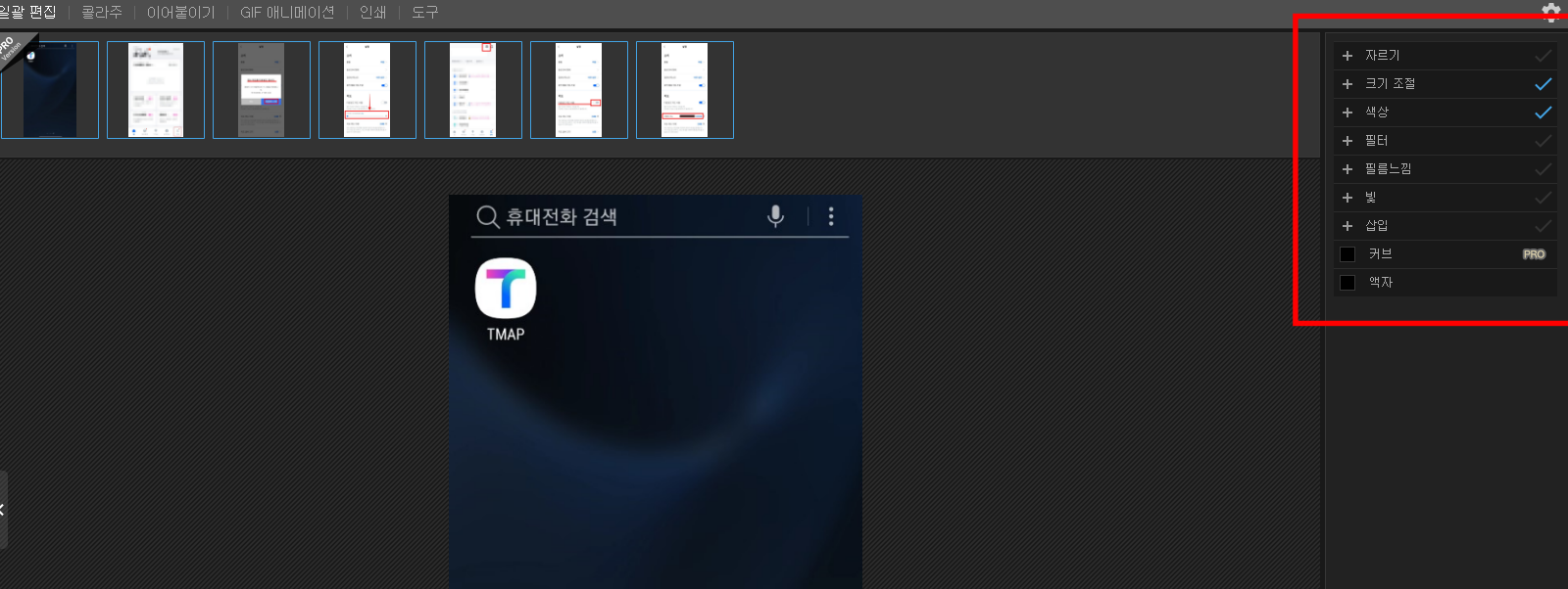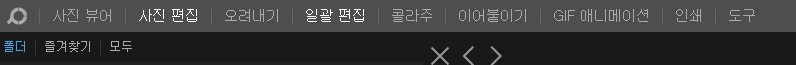 1. 가장 먼저 포토스케이트 X를 실행합니다. 기본적으로 사진편집 기능이 활성화 되어 있습니다. 상단 메뉴를 확인합니다.