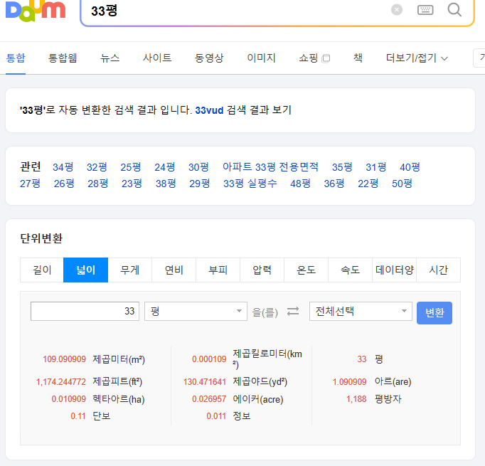 2. 3.305785㎡ 검색 결과를 확인해볼까요.