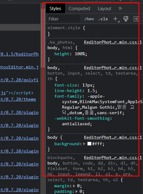 - 개발자 도구에서 요소를 선택하면 css 요소에 대한 정보를 얻을 수 있습니다.